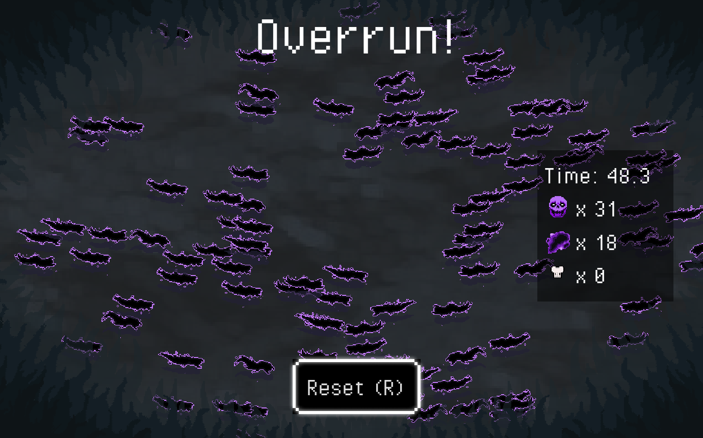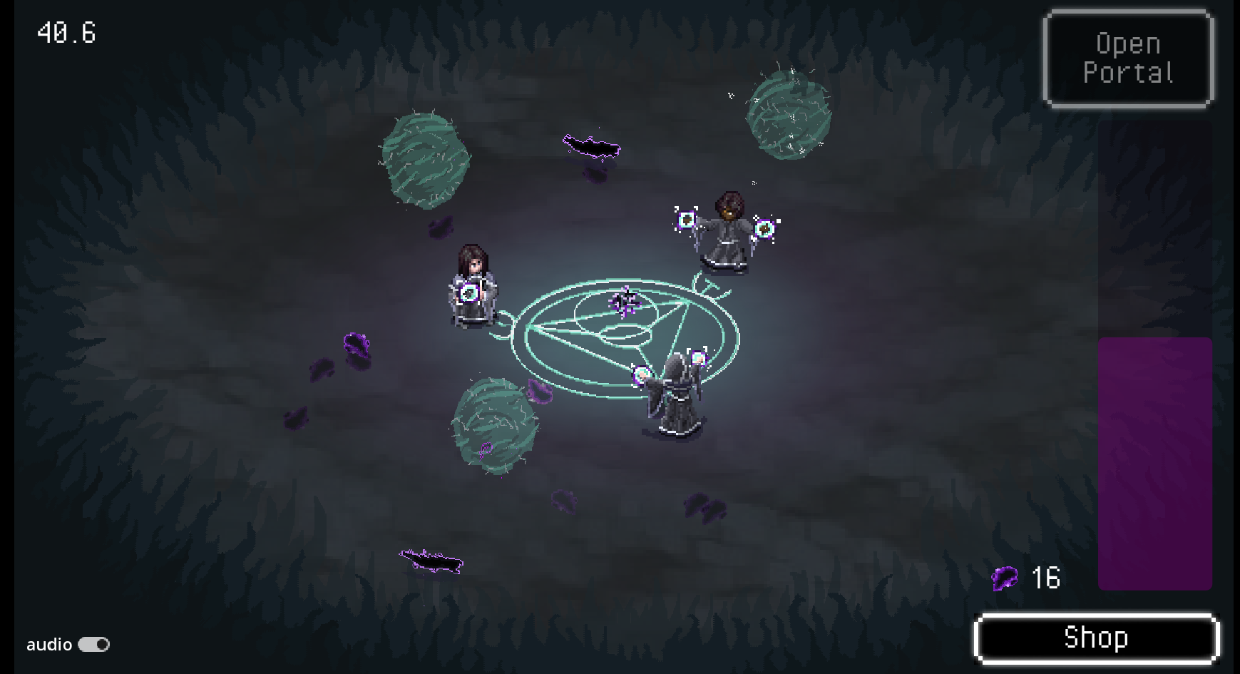 You and your acolytes have entered the Shadow Realm in search of power to fuel your dark magic. Beginning a ritual to attract the attention of the creatures that live there, you must destroy the shadowlings and harvest their essence, collecting enough to make your journey worthwhile, before escaping through the portal that you have prepared. Your magic is powerful, but you and your disciples only have so much attention, forcing you to decide where and when to deploy your spells. Can you survive long enough to bring home a massive bounty? Or will the onslaught of the Shadow swallow your cult before you can escape?